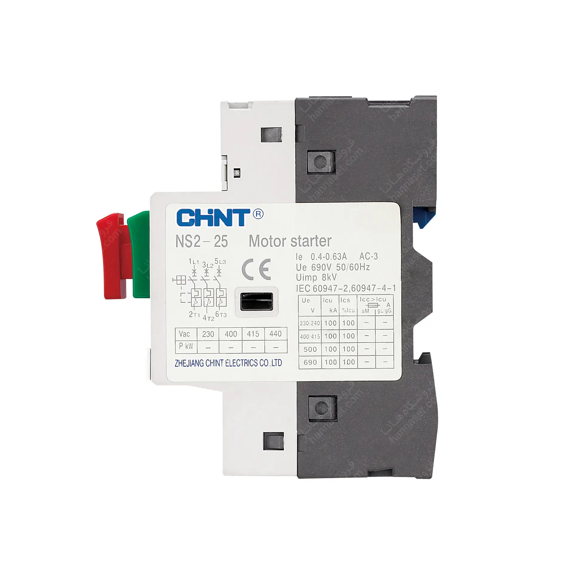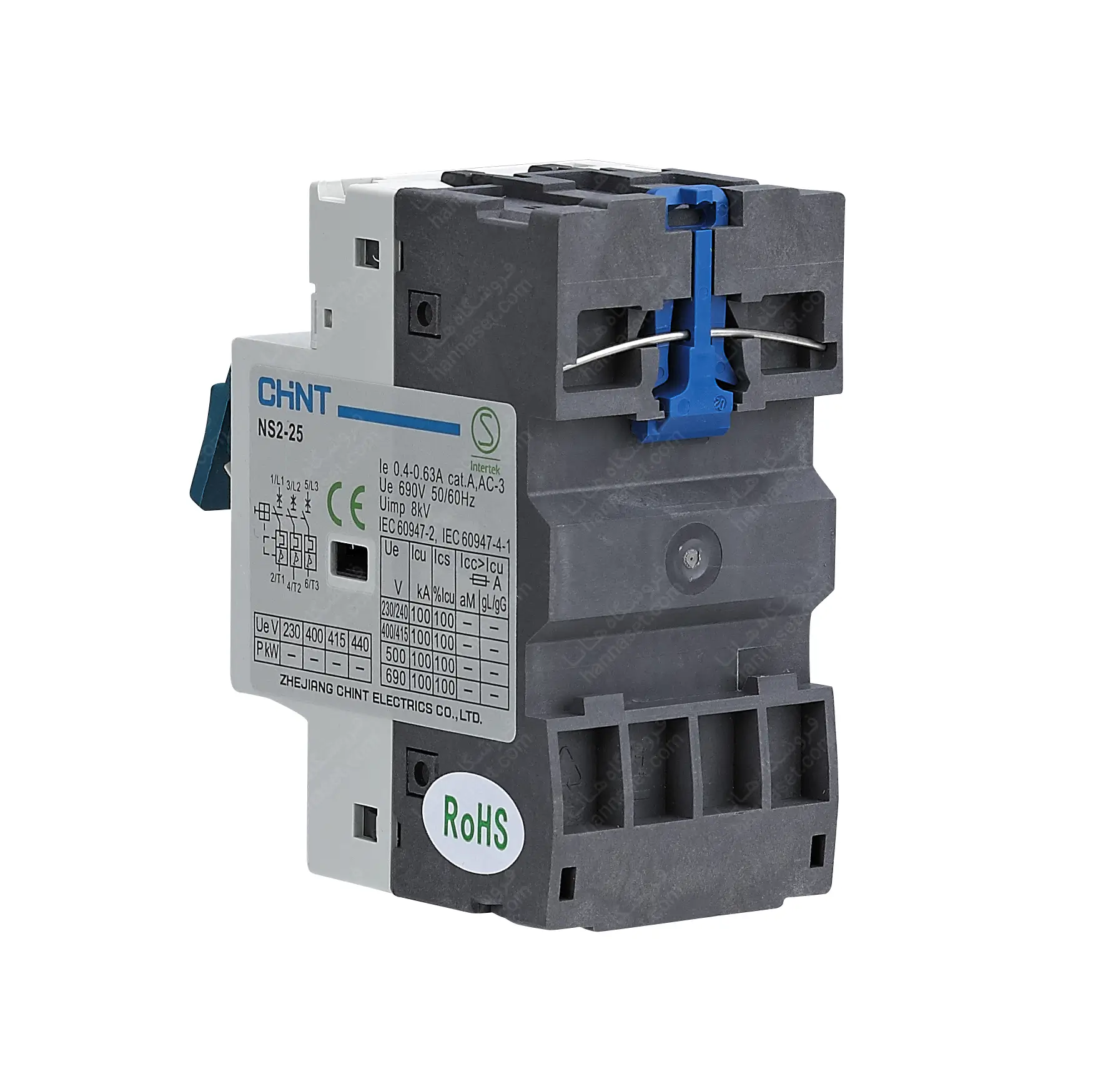 کلید حرارتی (محافظ موتور) MPCB مدل NS2-25 4:6.3 چینت از محصولات باکیفیت برند Chint است که به عنوان جایگزینی مطمئن برای مجموعهای از تجهیزات حفاظتی مانند فیوز، کلید زیر بار و رله حرارتی (بیمتال) عمل میکند.